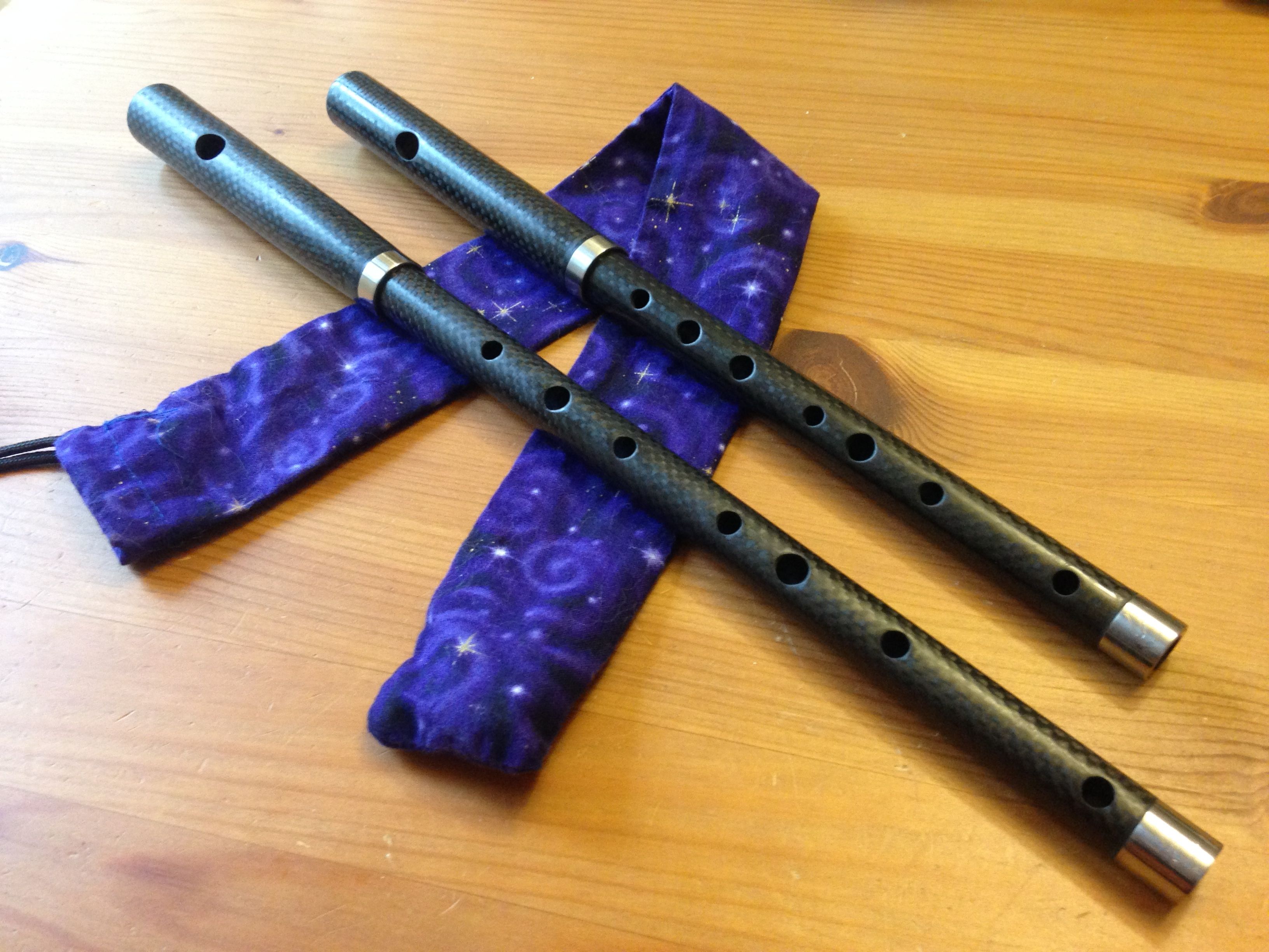 Here is a pic of the new Tiny!Flute next to Rossignolet, for size comparison. Rossignolet is 15 5/8″ in length; the new one is 12 5/8″. Put another way, Rossignolet is just a bit longer than my forearm, while the new flute is just a bit shorter.